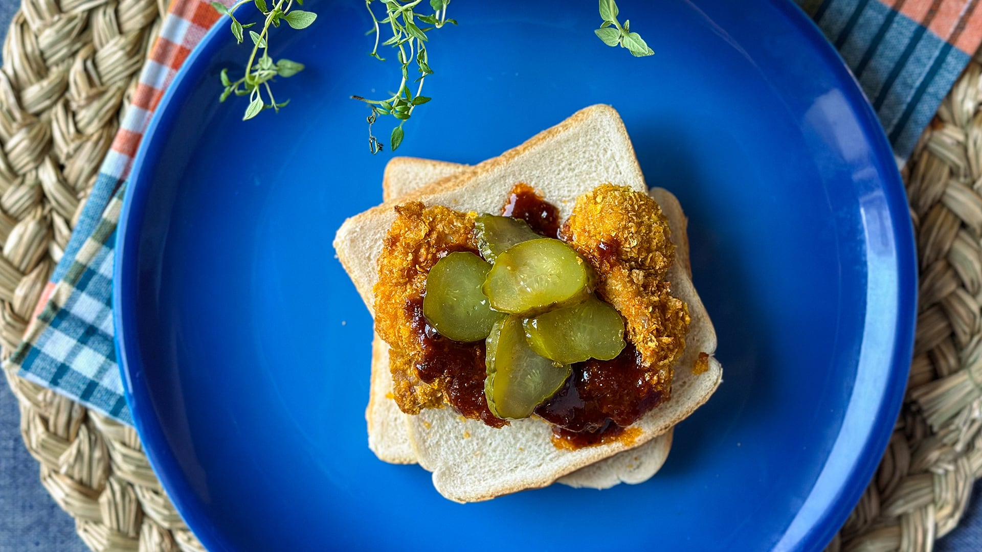 Mary Berg whips up a Nashville-style baked hot chicken sandwich, inspired by the first meal she ever made her mom—a bowl of cornflakes with water.