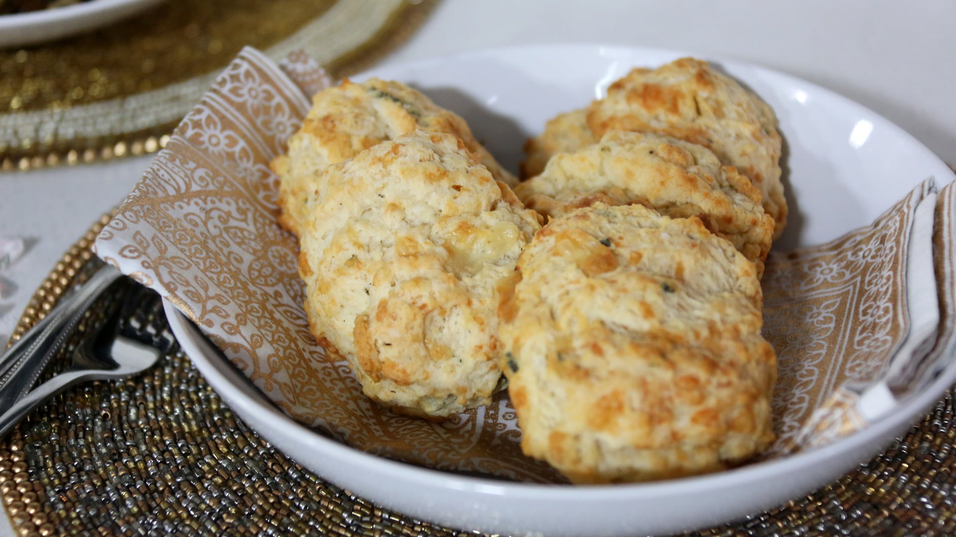- Stir together the flour, baking powder, salt, pepper, and garlic powder in a large bowl. Cut in the butter using a pastry knife, your hands, or a food processor. Stir in the grated cheddar and chopped sage then stir in one-and-a-half cups of the buttermilk. Stir just until combined, adding more buttermilk if needed. The mixture should be pretty wet as these are drop biscuits as opposed to classic biscuits that require rolling.