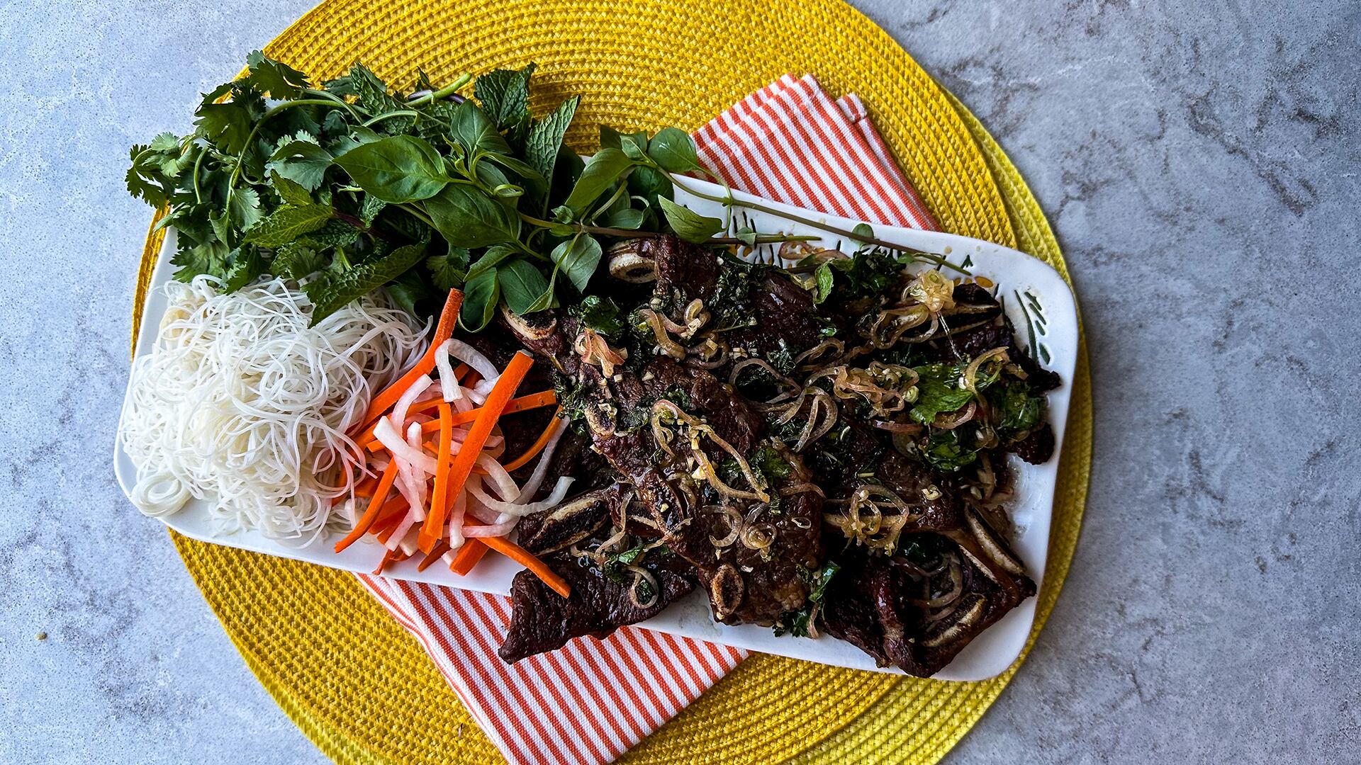 - Serve with vermicelli noodles, herbs, pickled carrots & daikon, and bean sprouts.