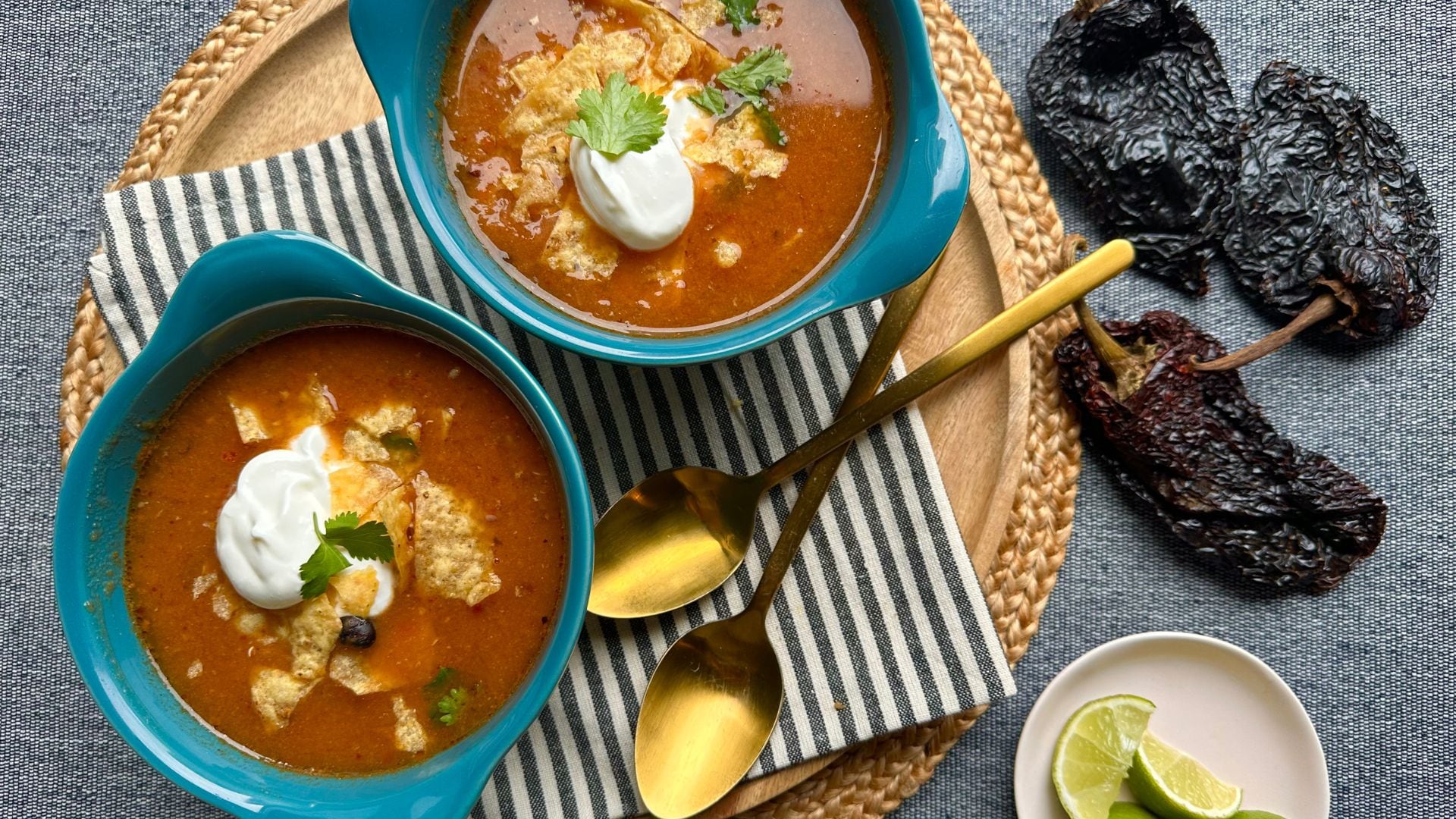 If serving immediately: Portion the soup into bowls and garnish with cilantro, sour cream, crushed tortilla chips and lime wedges.