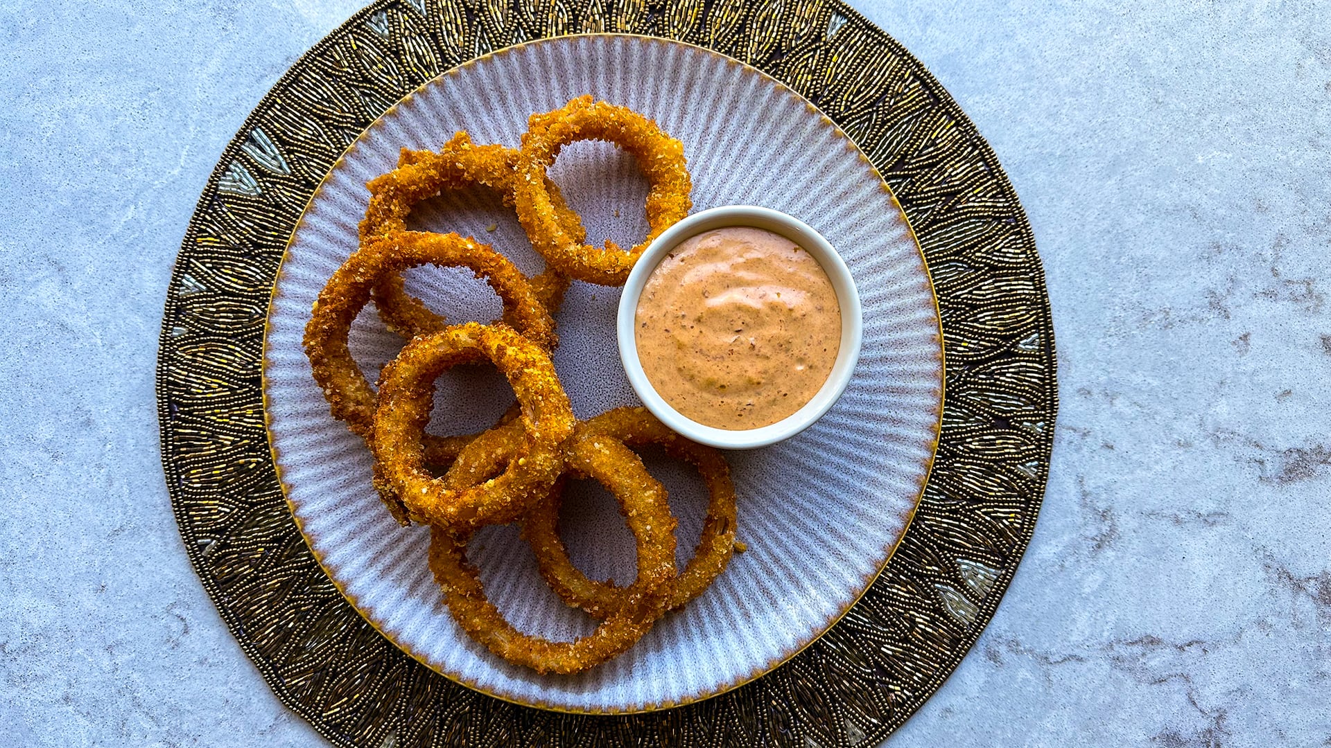 - Season the onion rings with salt and serve with the dip of your choice.