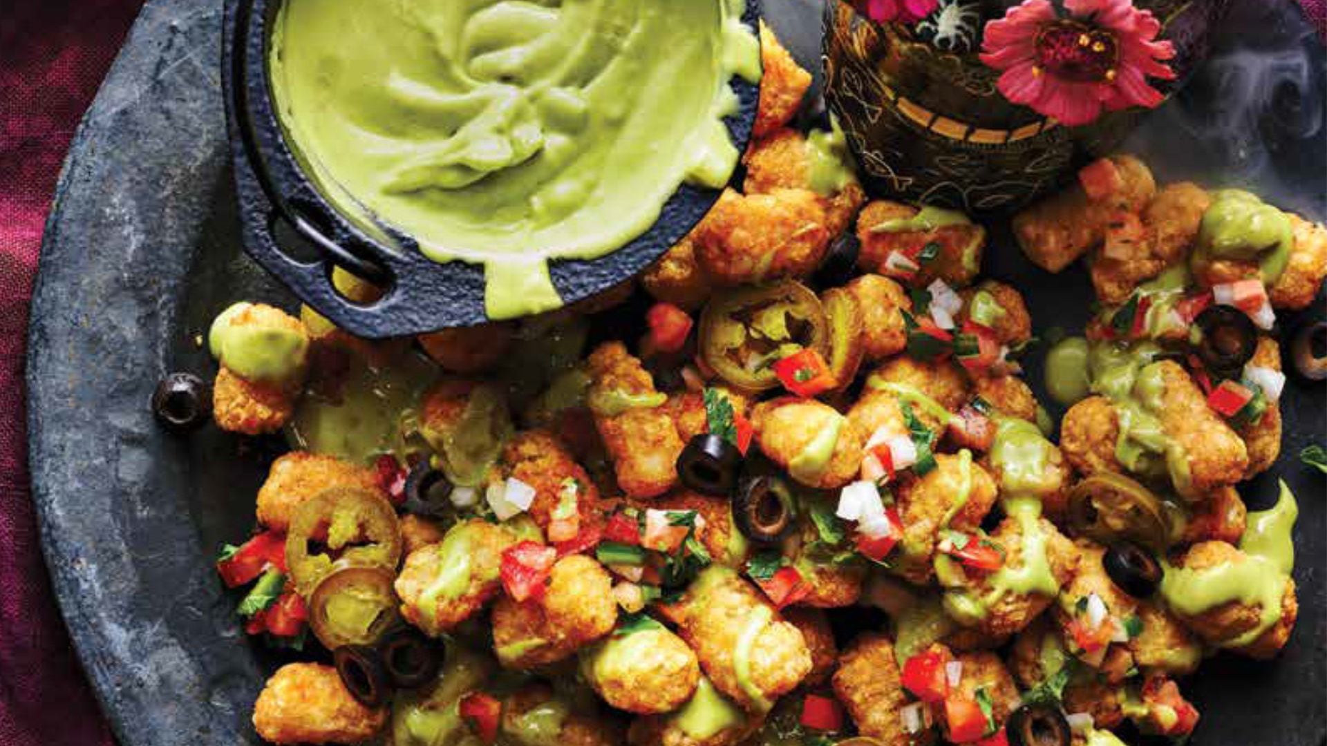 - To make the totchos, preheat the oven to 450°F. Spread the tater tots in a single layer on a large sheet pan. Bake, turning once or twice, until crisp and browned, about 30 minutes or according to the package directions.