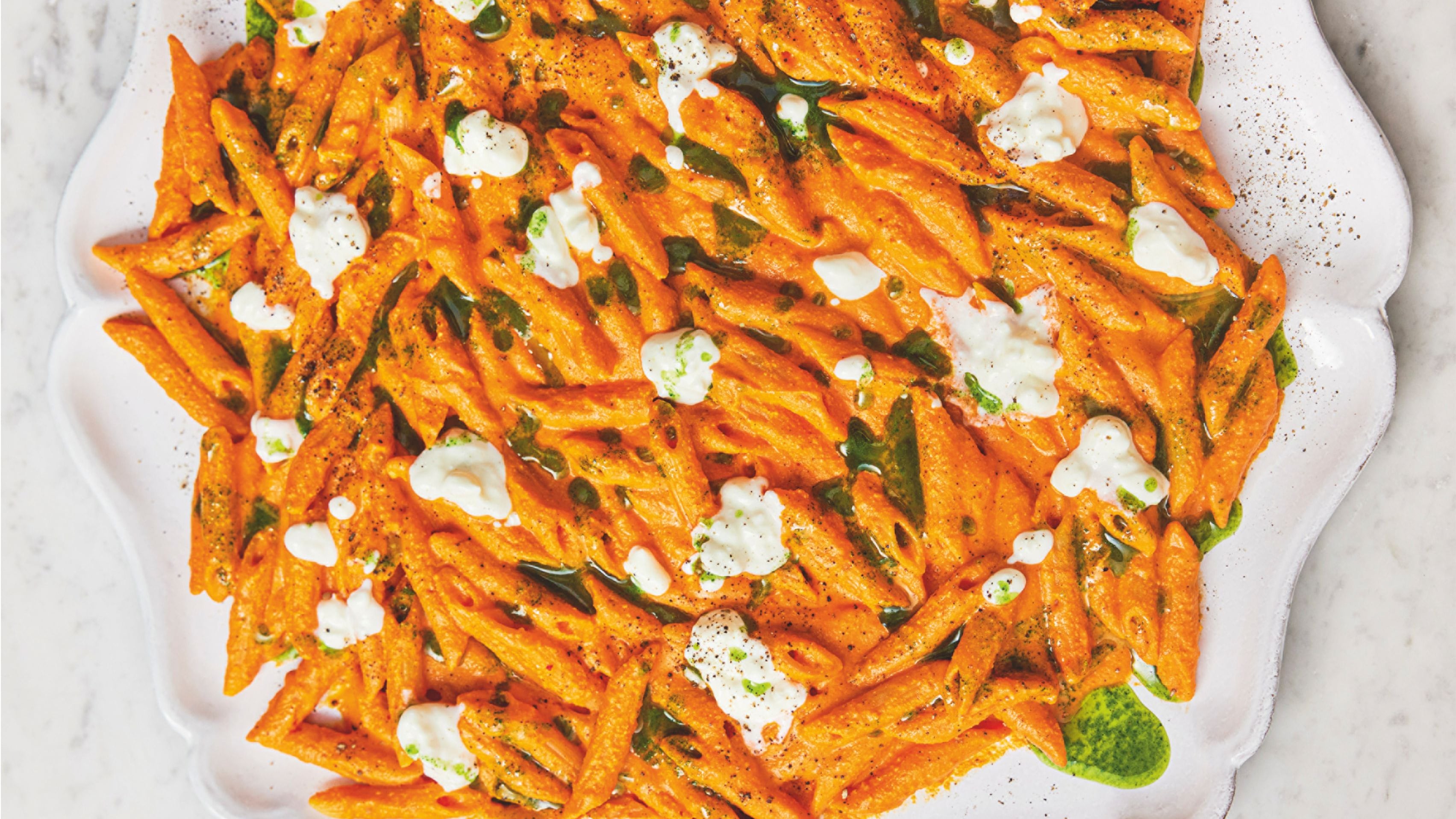 - Drain the pasta, reserving a cupful of starchy cooking water, then return it to the saucepan. Pour over the pepper sauce and toss together over the heat, thinning with a splash of cooking water, if needed, then season to perfection with sea salt and black pepper.