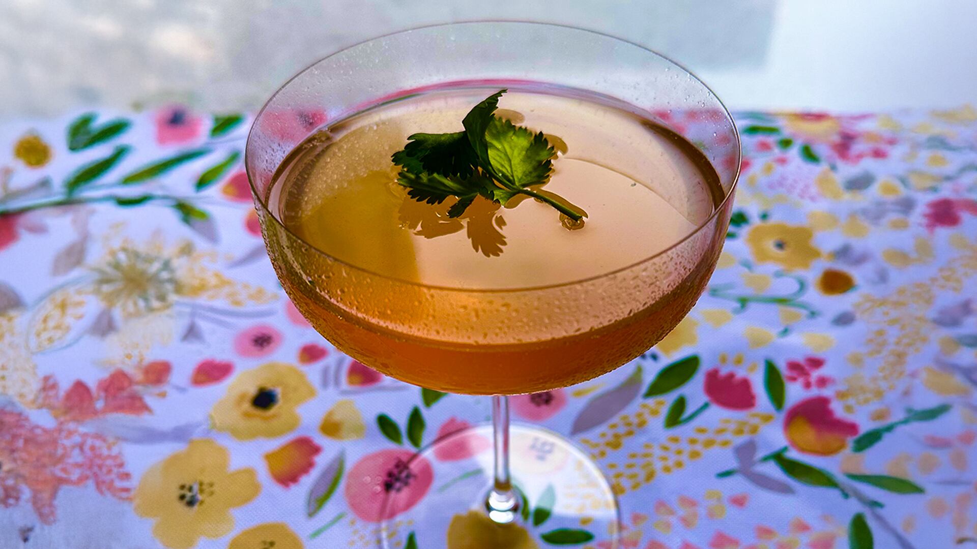 - Pour all ingredients into a shaker tin, fill with ice. Shake all ingredients and strain into a rocks glass filled with ice, garnish with cilantro.