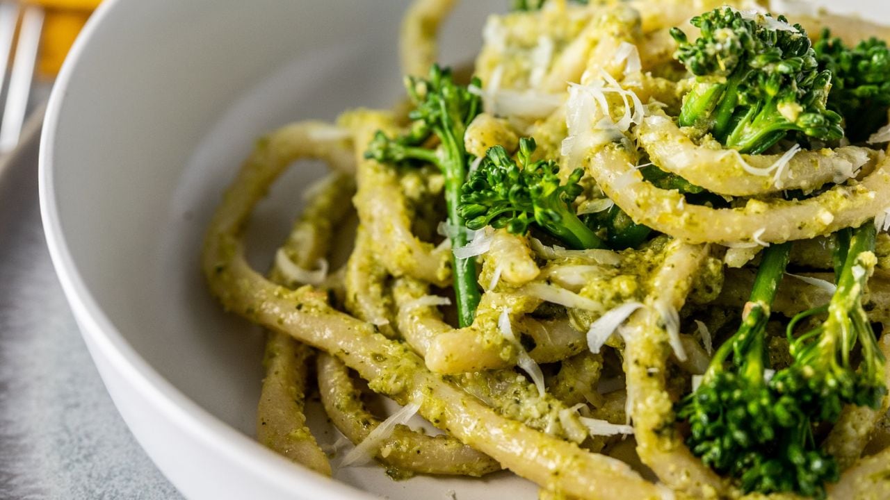 Note: We like to store our broccoli wrapped loosely in damp paper towels and refrigerating it. Sealed bags are not recommended, as broccoli needs air circulation. Remember to reserve the stalk stems. They have a crisp texture with a slightly milder broccoli. The pesto can certainly be made in advance and kept in a sealed container in the refrigerator for up to a week.