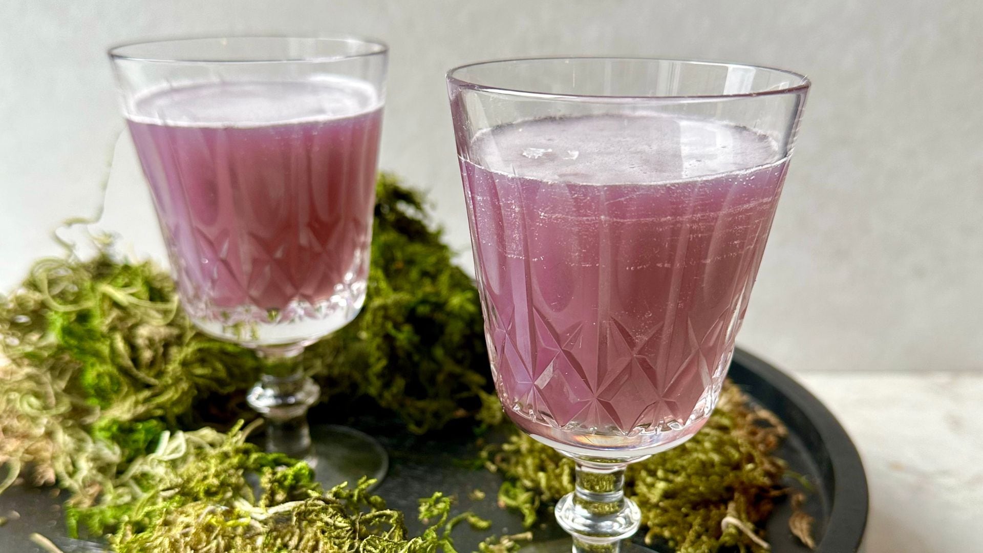 - Served in a coupe, atop a bed of dry ice with black moss and some green lights on top.