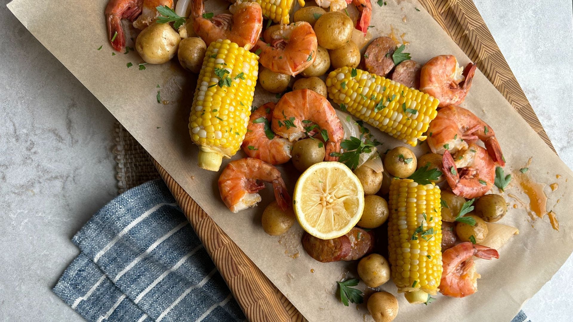 - Drain the shrimp boil and transfer to the bowl with the butter and toss well to coat. Serve in a large bowl or on a platter with lemon wedges on the side and scattered with parsley.