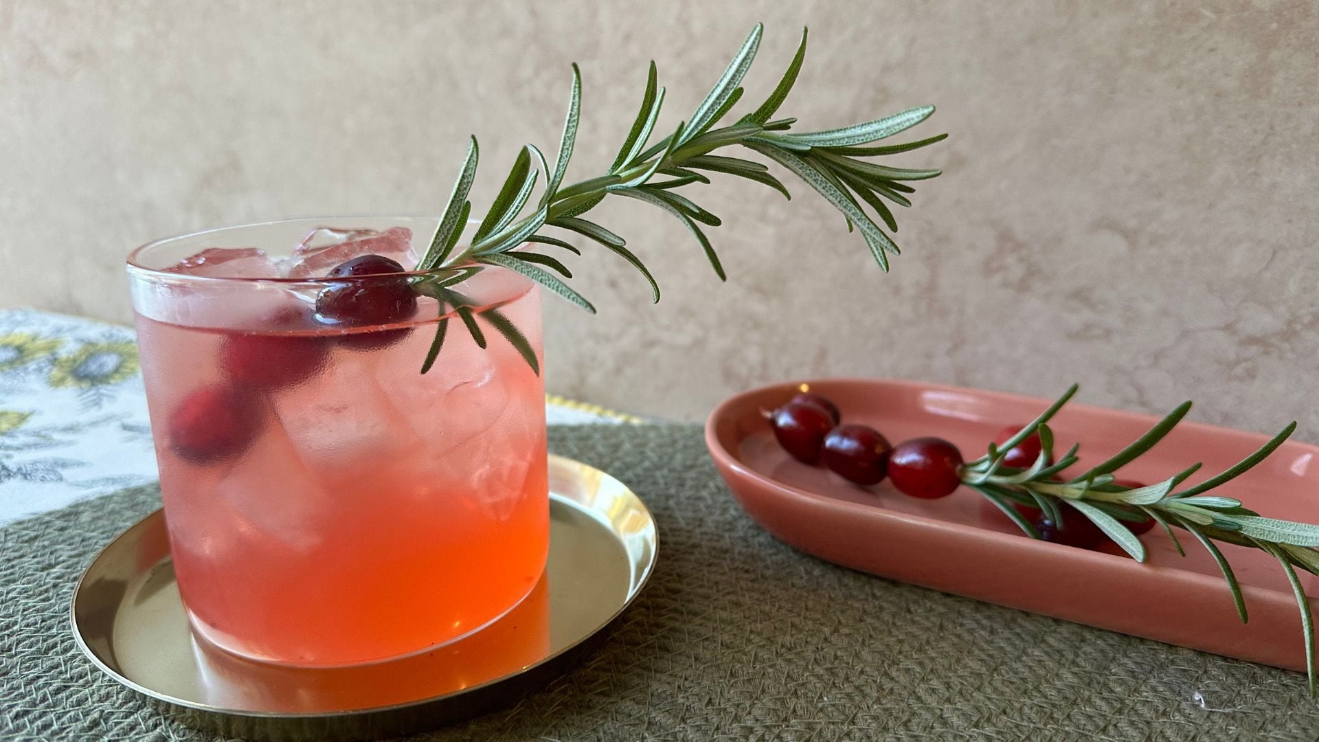 - Garnish with charred rosemary sprigs and fresh cranberry.