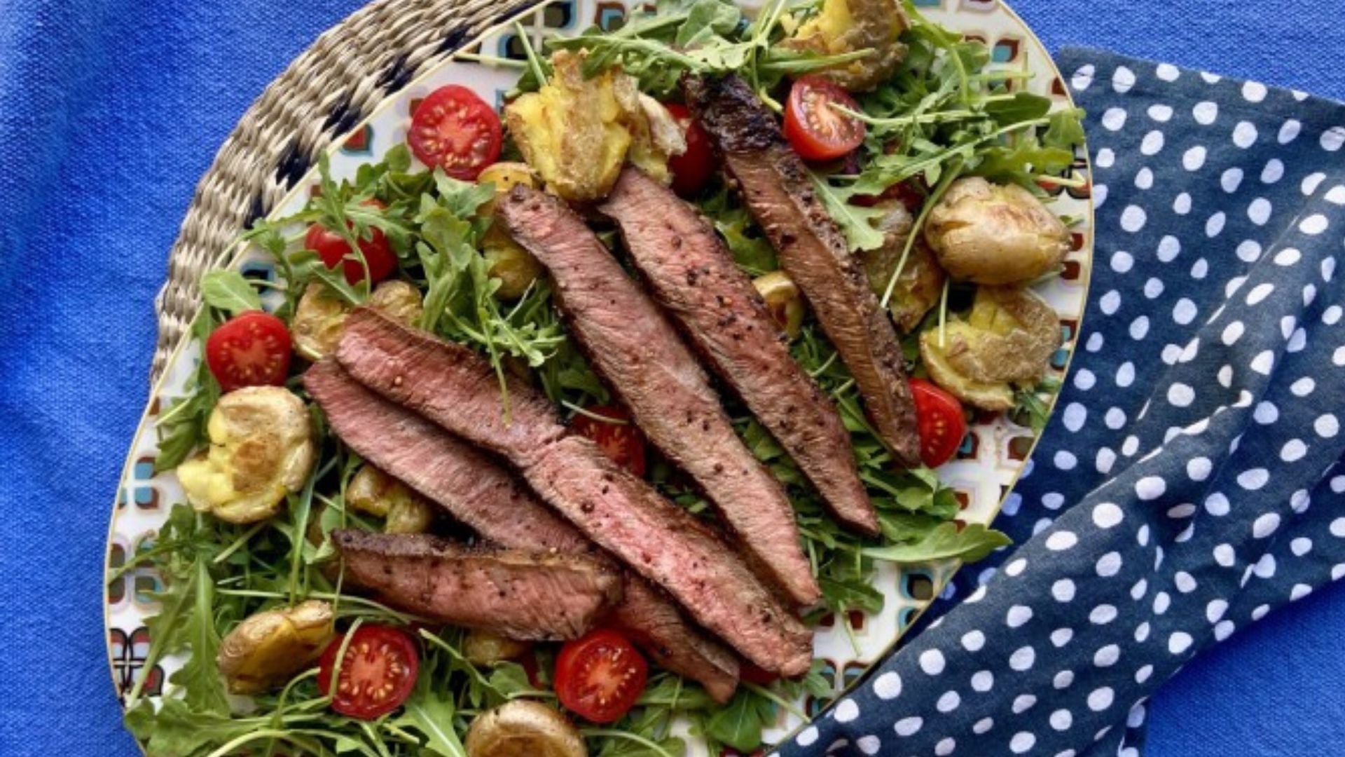 - Slice the flank steak(s) and arrange on top of the plated salad.