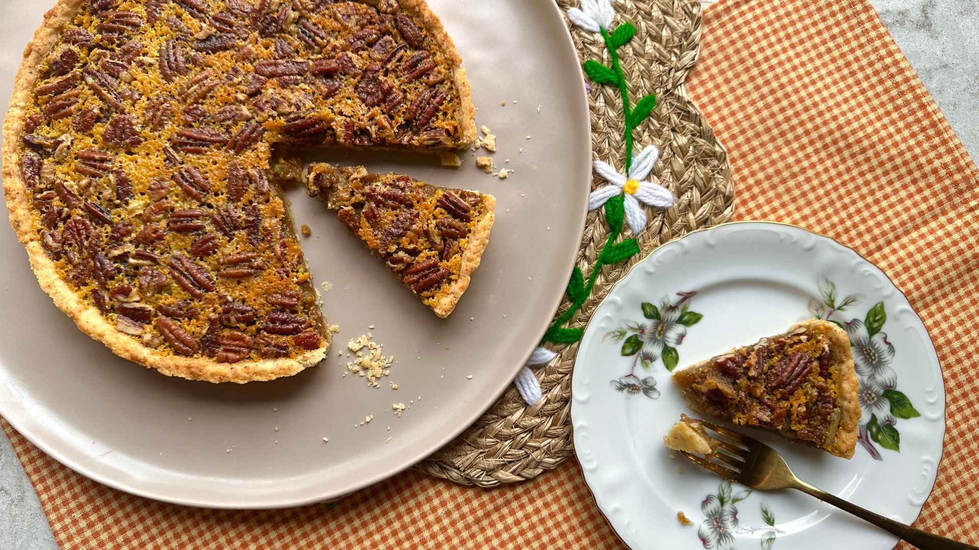 - Chill, roll, and line a 9-inch tart pan. Roll the dough out onto a piece of plastic wrap to help line the tart pan.