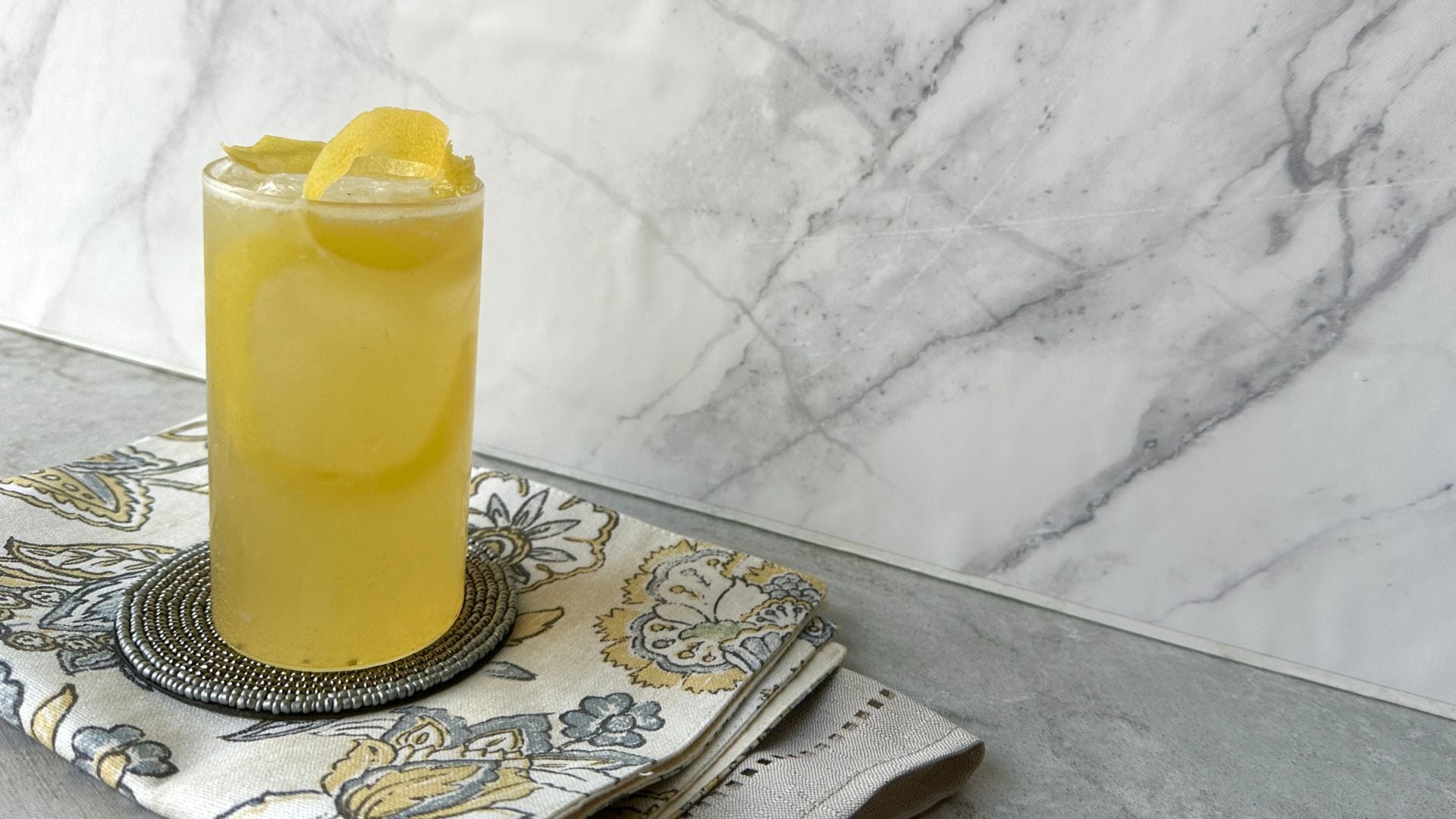 - Garnish with a thin lemon peel slice.