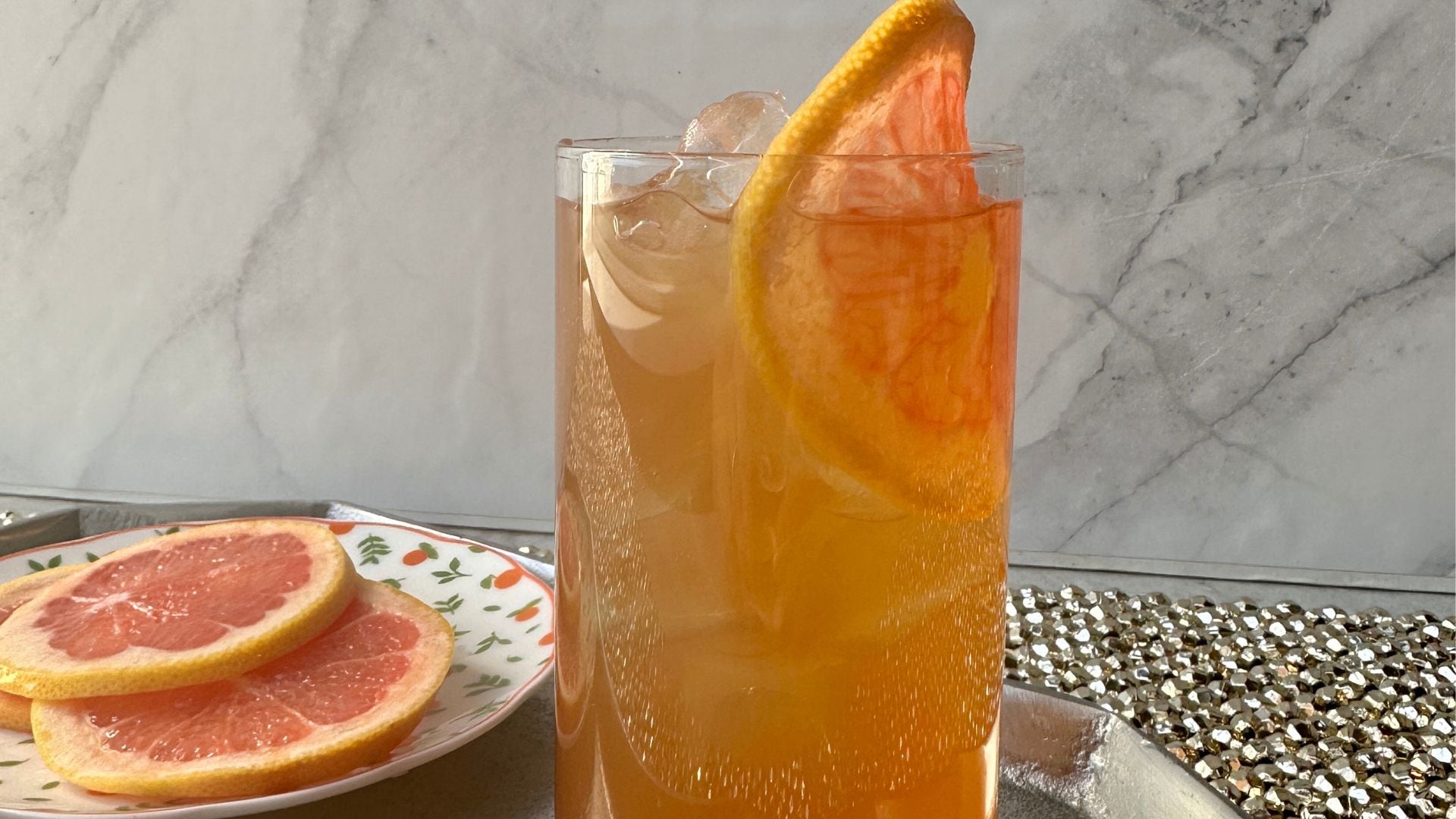 - Garnish with a thin grapefruit wheel.