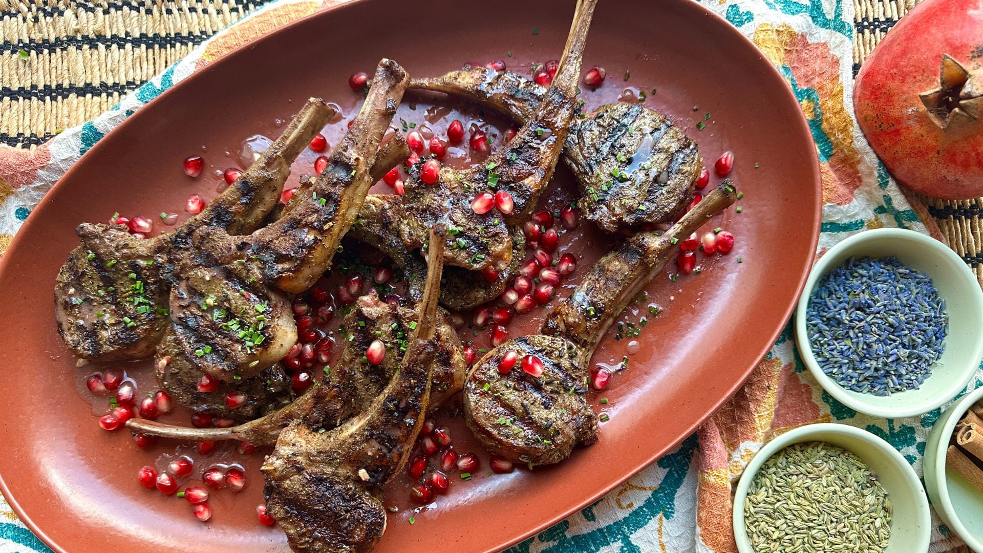 - Spoon pomegranate vinaigrette over lamb chops.