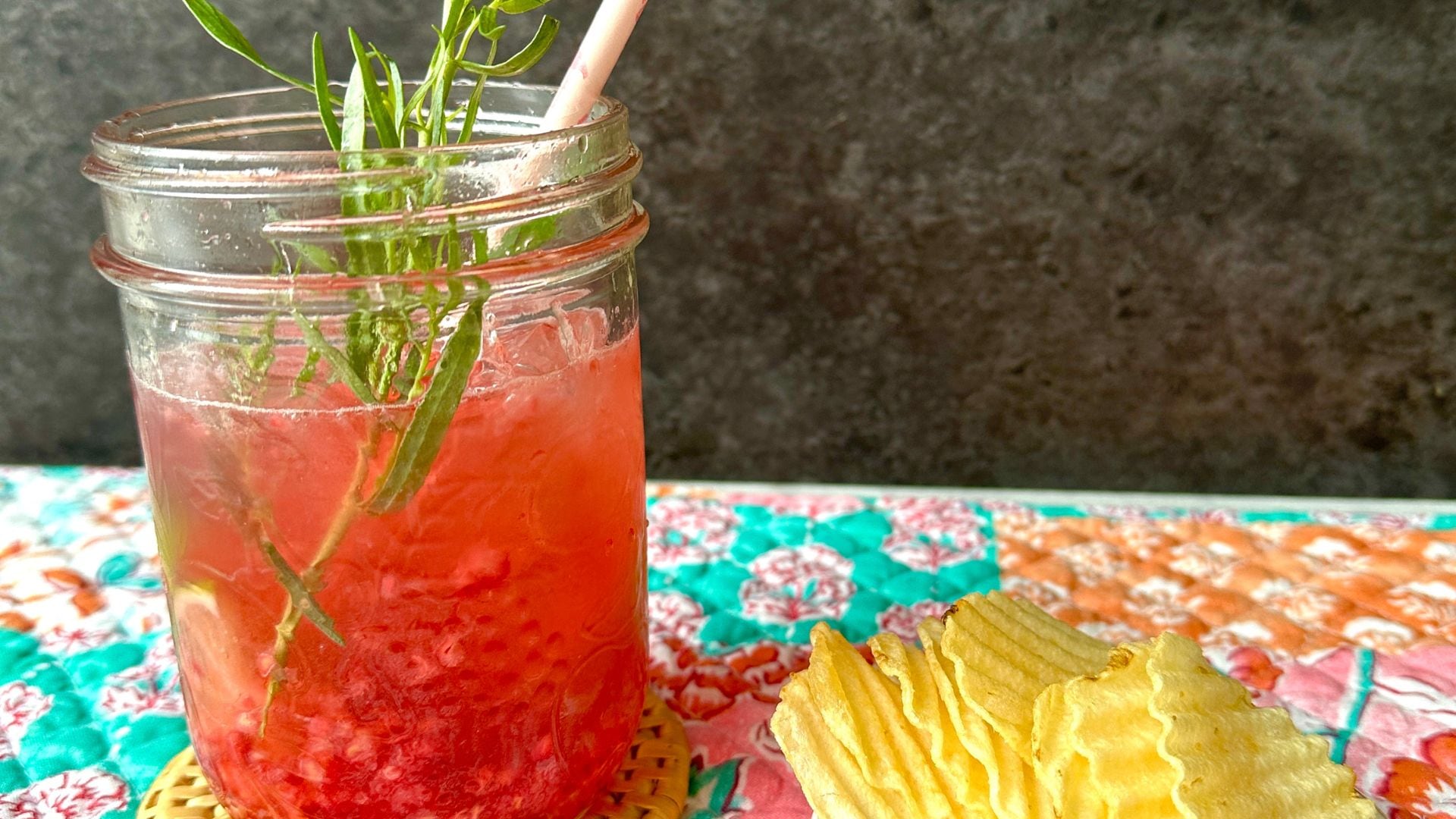 - In a mason jar (per person), add 1/2 lime cut in wedges, muddle raspberries, sugar, tarragon. Add gin, fill with ice and close the lid and shake, unlid and add a splash of soda.