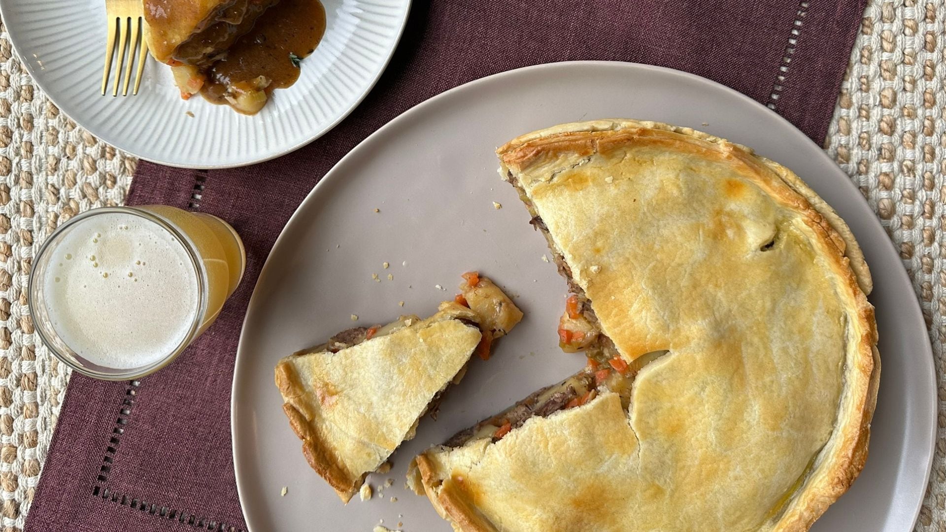 - Allow the pie to cool for 10 minutes before unmolding, slicing, and serving with the reduced braising liquid as a gravy.