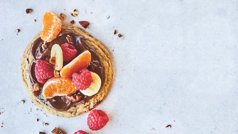 Using a small spoon, spread the center of each cooled cookie with 1 tbsp (15 ml) of the chocolate-hazelnut spread Top with the fruit and serve.