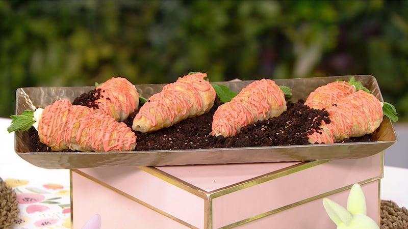 - When ready to serve, pipe into your cooled pastry carrots until filled. (For best results fill just before serving).