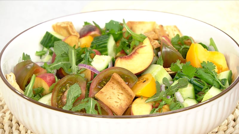 Peach Fattoush Salad with Sumac & Aleppo Pepper