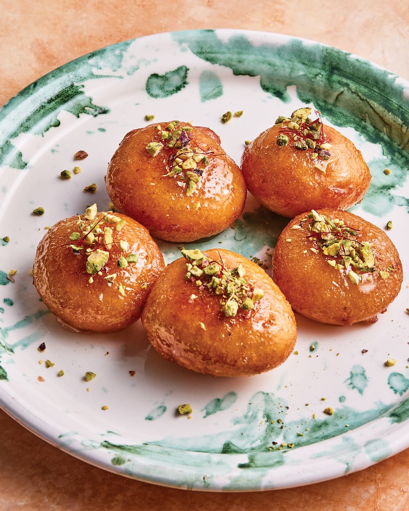 Place the warm malpuas directly into the saffron syrup for 30 seconds, flipping to coat.