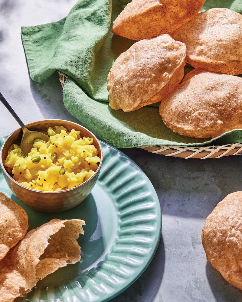 Cook the poori for 20 to 30 seconds on each side or until lightly golden. Drain on a paper towel. Repeat with the remaining rolled poori.